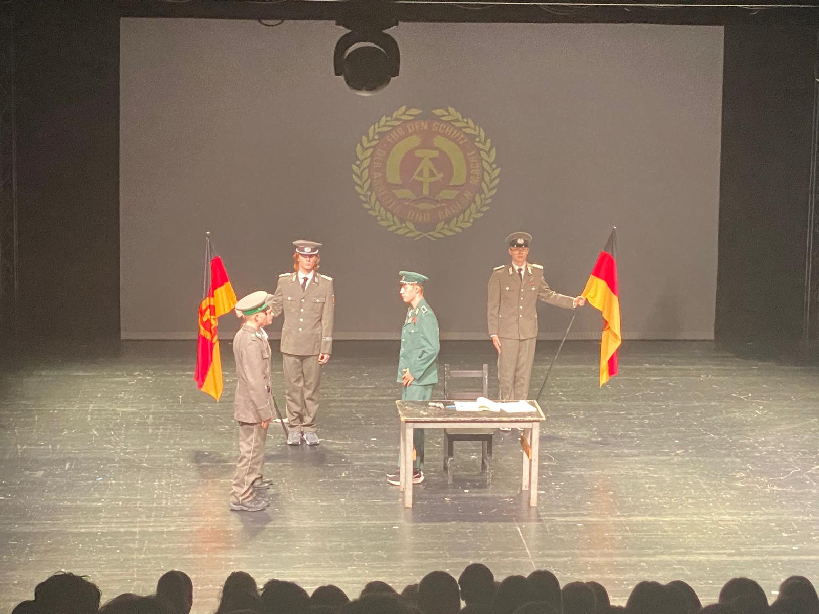 Das Theaterstück „Im Schatten der Berliner Mauer“ inszeniert aus der Sicht von Zeitzeugen diese Situation und ermöglicht Schüler*innen und Jugendlichen einen tieferen Einblick in die damalige Zeit. Die Handlung folgt dem siebzehnjährigen Mark, der in Westberlin aufgewachsen ist und noch nie die andere Seite der Stadt gesehen hat. Eines Tages packt es ihn und er beschließt, gegen den Willen seiner Mutter, mit einigen Freunden die andere Seite der Stadt zu besuchen. Dies war nur für die Bürger der westlichen Seite der Stadt möglich, wurde streng von den Grenzkontrollen überwacht und war ebenso stark von den Möglichkeiten eingegrenzt. Höchste Priorität war, Spionage, Sabotage und Flucht zu verhindern. Auf der anderen Seite Berlins lernt Mark unerlaubt ein Mädchen kennen und so kommt die Kettenreaktion erst ins Rollen…